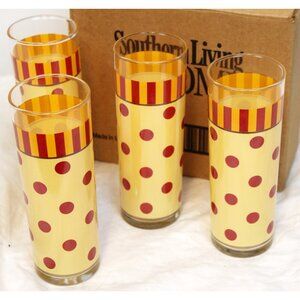 Southern Living Gail Pittman Siena Tumblers Set of 4 Yellow Red Stripe Dot 40485