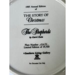 This beautiful Annual Southern Living Gallery gold accented plate from 1985 tells 'The Story of Christmas' and depicts 'The Shepherds' by Gerri Katz. It's a wonderful collectible piece for the holiday season or a thoughtful gift for someone who appreciates fine craftsmanship and the spirit of Christmas. Display it on a wall, shelf, or plate stand to add a touch of holiday elegance and tradition to any room-and at the same time have an exquisite addition to your collection of holiday decor. This limited-edition plate is #11678/19,500, measures 10.5" in diameter and is in excellent condition. A perfect addition to your Christmas collection and an artistic way to celebrate the magic of Christmas year after year! # 5261