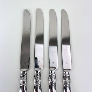 In good used condition. They have wear from handling/stacking and normal regular use including surface scratches/abrasions and some small blade pit spots.