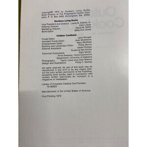 A charming vintage hardcover edition of Southern Living Outdoor Cookbook, produced by Southern Living Books (Progressive Farmer Company). First printing from 1973, this classic volume is packed with outdoor entertaining inspiration—from menus to equipment choices—perfect for backyard gatherings, grilling, and al fresco cooking. Ideal for collectors, Southern cooking enthusiasts, or anyone looking for retro recipe flair.