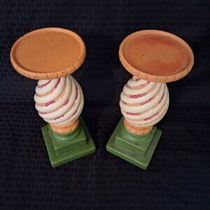 Southern Living at Home Carousel PAIR Candle Holder Ceramic Pillar Stand 10"