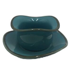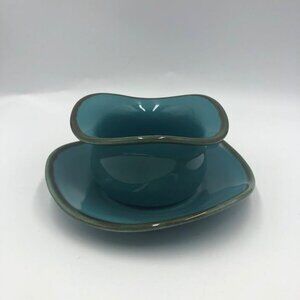 Southern Living at Home RETIRED Set of 2 Blue Tuscan Tidbit Bowl and Saucer Set. Set if pre-owned. Please see all photos for visible condition. No original box. Research shows this actual set has been retired and no longer made. Brazil. Ceramic. Plate is approximately 6 inches x 1 inch. Bowl is approximately 4 inches x 2.5 inches. There is a very minor scratch on the plate top - it won't show in photos but is minor. Otherwise, doesn't really even look used at all. No noticeable chips/cracks.