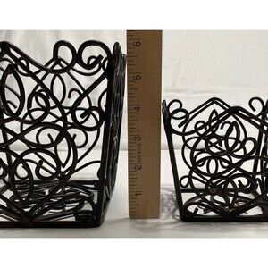 Inspired by the elegant lines of our Estate Iron Collection. These rubbed iron plant holders can be used in a multitude of ways. Theyre perfect for holding pillar candles and small arrangements of brilliant blossoms or even mini pumpkin topiaries. Makes a splendid gift! Not food safe, line for used with food. Ribbon & other decor not included.