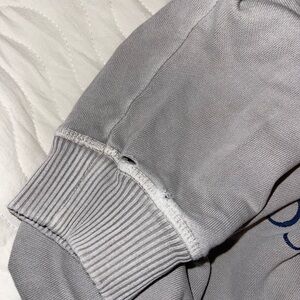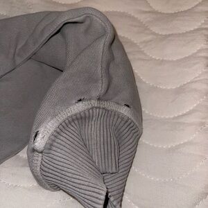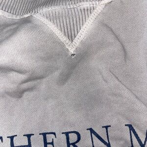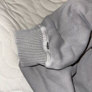 Soft crewneck runs big fits a large. This crewneck has holes on the wrist of the sleeves but are bearly noticable. Can be fixed by sewing the holes