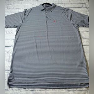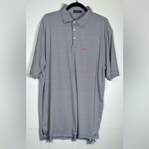 Southern Marsh Black, Blue and White Striped Polo Shirt with Logo. Size XL
