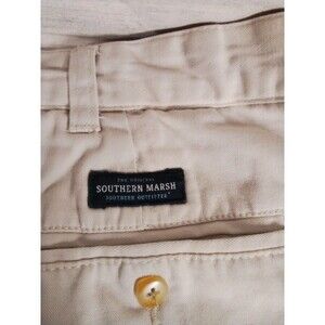 The Southern Marsh Khaki Shorts in size 36 are a stylish and versatile addition to any man's wardrobe. Featuring a classic chino style, these beige shorts are perfect for casual or semi-formal occasions. Made by the reputable brand Southern Marsh, these shorts are sure to offer both comfort and durability. Whether you're dressing up or down, these shorts are a great choice for any fashion-conscious man.