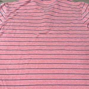Shirt is Pink with Bold navy blue stripe and thin white pinstripes, perfect spring colors and finished off with a finely stitched duck logo and laser engraved buttons.