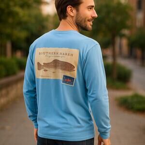 Southern Marsh Men's Tee Breaker Blue Size L Expedition Series Rainbow Trout