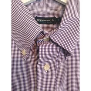 Southern Marsh Shirt Men Size 1 Purple Micro Check Wrinkle Free Button Down Logo