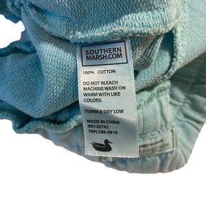 Elevate your loungewear collection with these Southern Marsh Women's Rachel Relaxed Shorts in Blue. These shorts feature a drawstring closure, slash pockets, and an embroidered logo on the front. The fabric is made of a blended fabric of linen and 100% cotton, making it lightweight, comfortable, and easy to care for. Perfect for summer, fall, or spring, these chino-style shorts have a mid-rise waist and a 3.5-inch inseam. The solid blue color and bohemian theme make them a great addition to any casual outfit. Whether you're walking, running errands, or just relaxing at home, these shorts are the perfect choice.