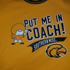 Get your little one's fandom started with this adorable Southern Miss Golden Eagles Logo bodysuit! Authentic Sports Gear by Knights Apparel. NCAA Collegiate Licensed Product. All Logos are Screen-printed