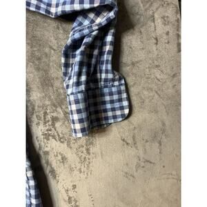Elevate your wardrobe with this stylish Southern Pines men's button shirt in size L. Featuring a classic blue plaid pattern, long sleeves, and a collared neckline with a spread collar style, this button-up shirt is perfect for casual occasions. The shirt is made of cotton knit fabric, ensuring comfort and durability, and comes with button closures for ease of wear. The accents and features are clearly visible in the pictures, allowing you to make an informed decision. This shirt is a great addition to any collection, so don't miss out on this opportunity!