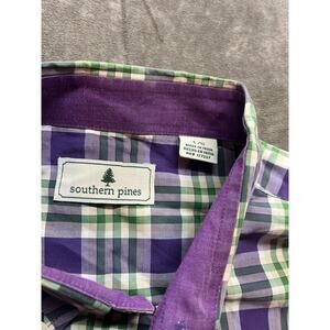 Southern Pines Button Up Shirt Mens L Purple Plaid Long Sleeve Collared