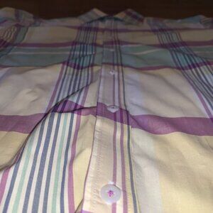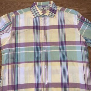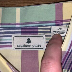 Southern Pines Men’s L Cotton Button Up Shirt Long Sleeve Yellow Purple Plaid