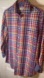 Southern Pines Plaid Button Up Shirt Chambray Trim Blue Pink Size Medium. Long sleeves. Collared. Button Down. Contrast roll up cuff in chambray blue. Roll up to show or keep rolled down. Gently used Good Preowned Condition. No holes or stains. Fabric tag torn.