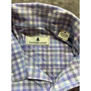 Southern Pines Shirt Mens Medium Purple Green Plaid Long Sleeve Button Up