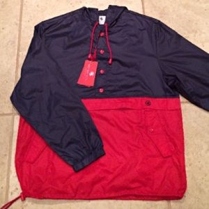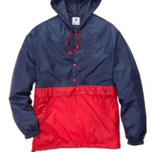 Nylon Anorak, Hood, Pockets with Snaps, Elastic Draw String Cords, Packable, Water Resistant. Nylon Anorak, Hood, Pockets with Snaps, Elastic Draw String Cords, Packable, Water Resistant. Pack able rain jacket from Southern Proper. Elastic draw string cords with slash pockets with snaps. 5% Nylon 35% Polyester.