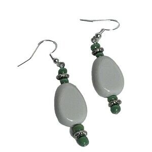 Very cute white and green dangle earrings on ear wires that are S925 silver.
