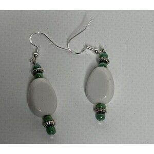 Southern Sista White And Green Beaded Dangle Pierced Earrings Ear Hooks S925