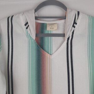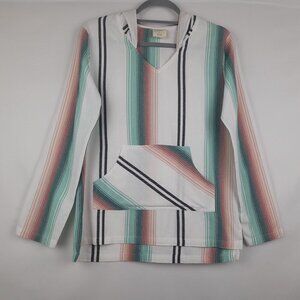 Southern Spirit Sz S Beachy Striped Hoodie Pullover Cotton Long Sleeve Boho Top