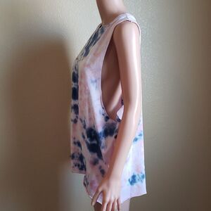 Women's Size XL Southern Spirit Pastel Tie-Dye Tank Top Tee Shirt High Neck Large Arm Holes Loose Fit Pastels Fabric: 100% cotton Cropped Side vents at hem Casual, beachy, pastels Festivals, Work-outs, Shoulder to shoulder: 13.5" Front shoulder to hem: 28" Armpit to armpit: 23.5" EUC