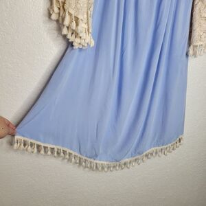 Southern Stitch Blue Crochet Lace Bell Sleeve Tassel Off the Shoulder Dress XXXL