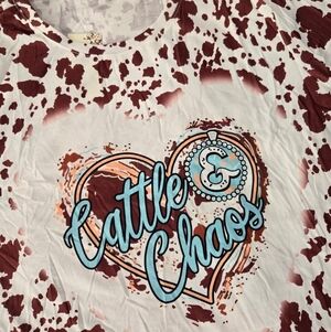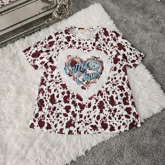 Southern Stitch "Cattle & Chaos" cow print top. Size XL. New.