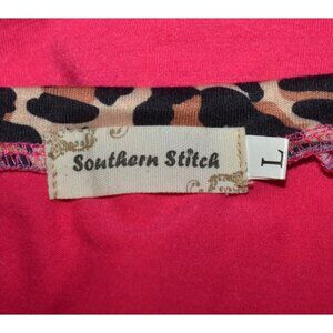 Southern Stitch Pink Raglan Cheetah Print Sleeve Top T-Shirt LOVE Graphic Size L