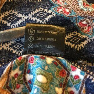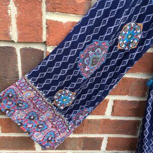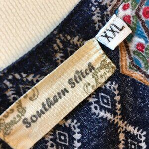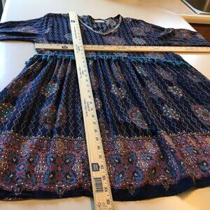 Southern Stitch Tunic Mini Dress Womens XXL Navy Print Tassels Boho Flowy
