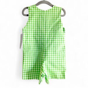 NEW Southern Sunshine Jon Jon romper, size 18 months. Lime green and white gingham with shamrocks smocked across chest. Buttons at shoulders, and snaps under legs.