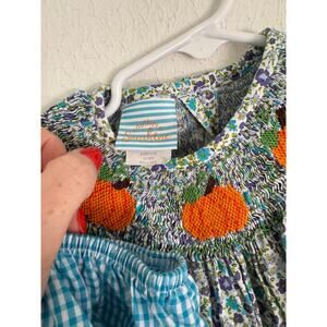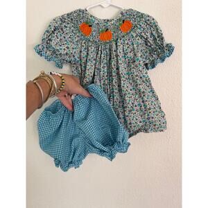 Southern Sunshine Smocked Pumpkin top with coordinating bloomers, size 2 - the sweetest for halloween or thanksgiving!