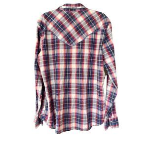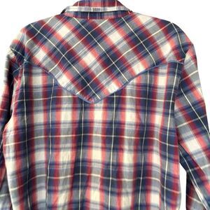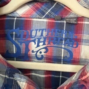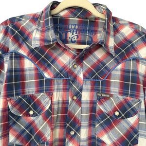 Southern Thread Western Pearl Snap Shirt Men Large Red Plaid Long Sleeve Rodeo