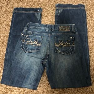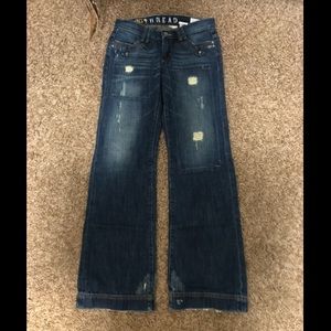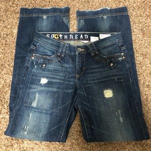 Lightly worn, southern thread mid rise trousers, 28 long (34 inseam)