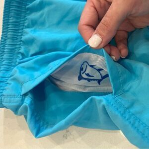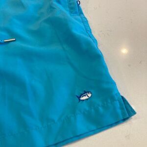 Southern Tide Aqua Blue Zipper Pocket Mesh Lined Elastic Drawstring Swim Trunk