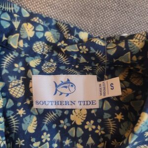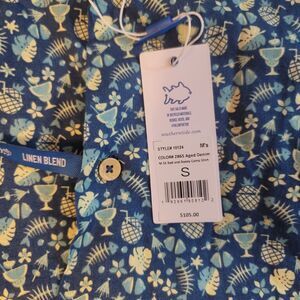 Southern Tide Bad and Boozy Short Sleeve Woven Camp Shirt in Aged Denim SZ.S NWT