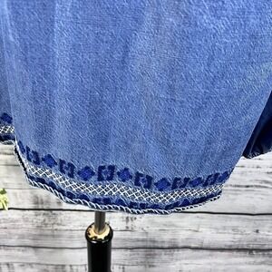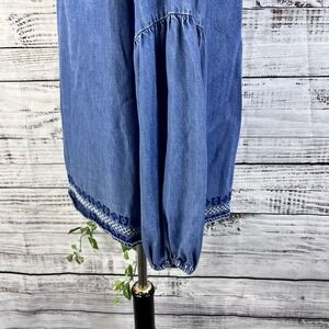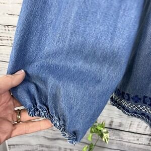 Southern Tide Blouse Tunic size Small Denim Jean Tencel Peasant Boho Tassels