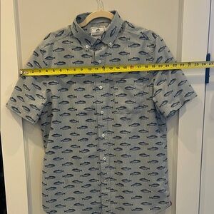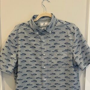Casual button-down with fish design. Perfect for laid-back occasions. Southern ride performance material. Worn once