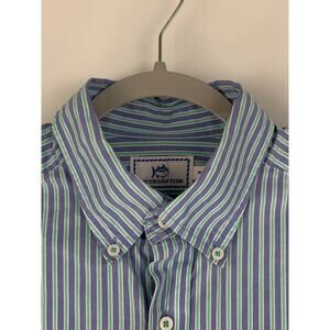 Southern Tide Classic Fit Button Down Shirt Mens Medium Blue Green Striped