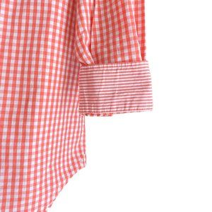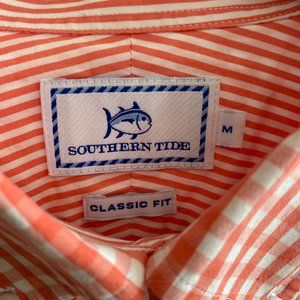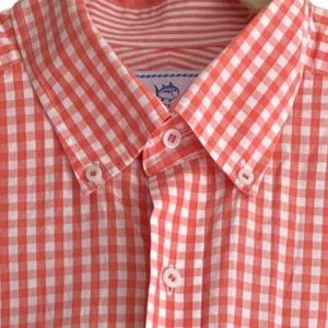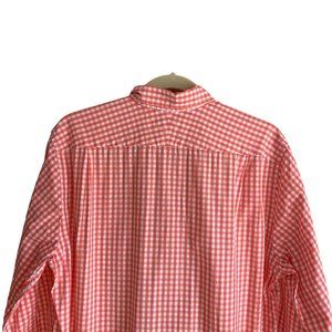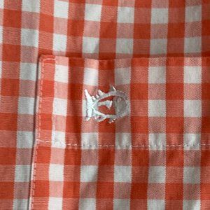 Southern Tide Gingham Contrast Cuff Button Up Shirt Coral Preppy Coastal-M