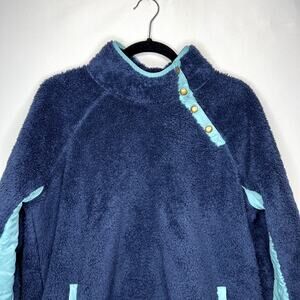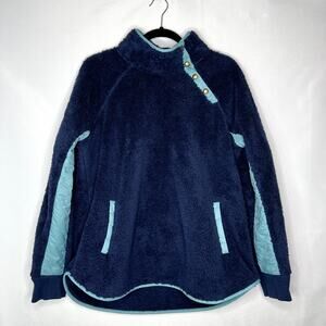Southern Tide Laura Button Neck Fleece Pullover blue sherpa button neck Large