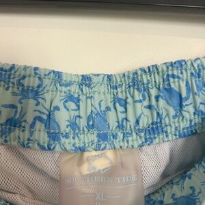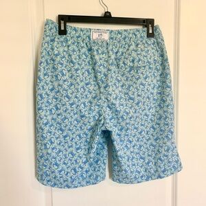 Light blue swim trunks with floral design. Comfortable and stylish.