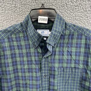 Southern Tide Long Sleeve Shirt Mens M Plaid Green Blue Button Down Classic