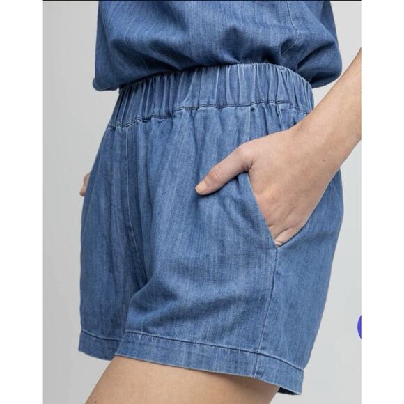 Southern Tide Mary Ellen Denim Shorts Size Medium Elastic Waist Chambray