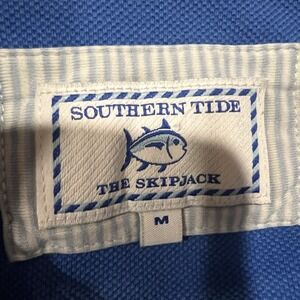 The Southern Tide Men's Golf Polo Shirt in size Medium is a stylish and comfortable option for any golfer. This blue short sleeve polo features a collared neckline with a button closure, giving it a classic and clean look. Made from a blend of spandex and cotton with a medium fabric wash, this shirt offers a stretchy and breathable fit, perfect for an active day on the golf course. The regular fit and point collar style add to the overall appeal of this polo, making it a versatile and practical choice for men who enjoy both fashion and functionality.