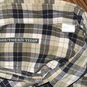 Southern Tide Men's Blue and Tan Plaid Flannel Long Sleeve Shirt M 0613. Condition is Pre-owned. Shipped with USPS Ground Advantage.