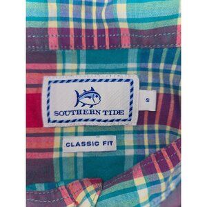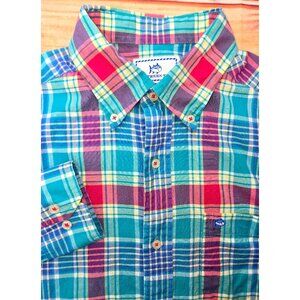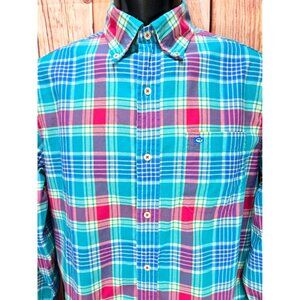 Southern Tide Mens Classic Fit Blue Plaid Dress Shirt Small