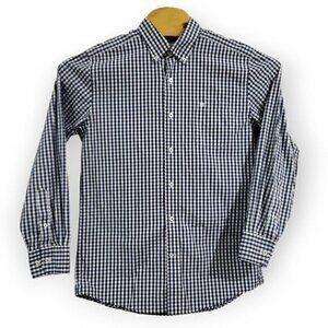 Southern Tide Men's Medium Trim Fit Blue White Checkered Shirt Striped Flip Cuff