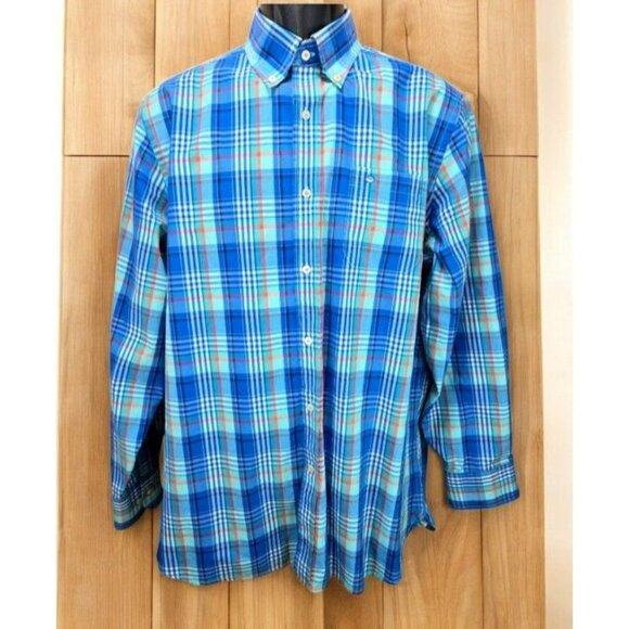 Southern Tide Men's Skipjack Shirt Medium Blue Plaid Dress