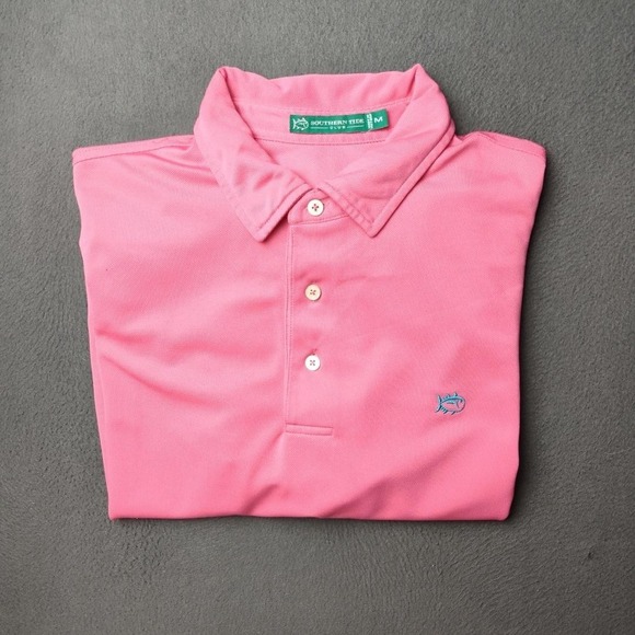 Southern Tide Polo Shirt Mens Medium Pink Performance Stretch Moisture Wicking
