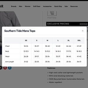 Southern Tide Shoreline Performance Pullover Frost Grey Size Medium Style #9825